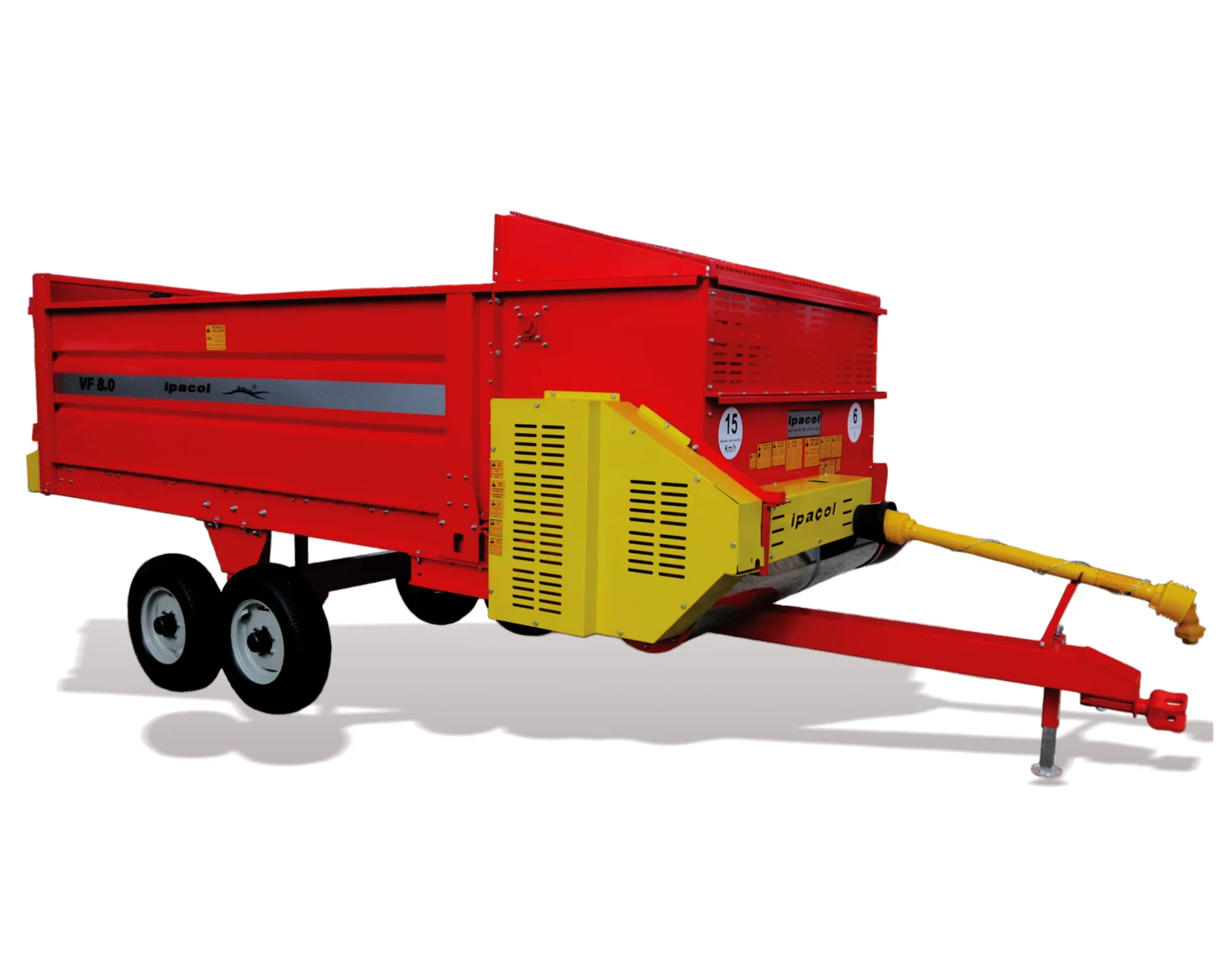 Ideal para transporte e distribuição de silagens de milho, sorgo, capins pré-secados, entre outros materiais de fibras longas e curtas em geral.
