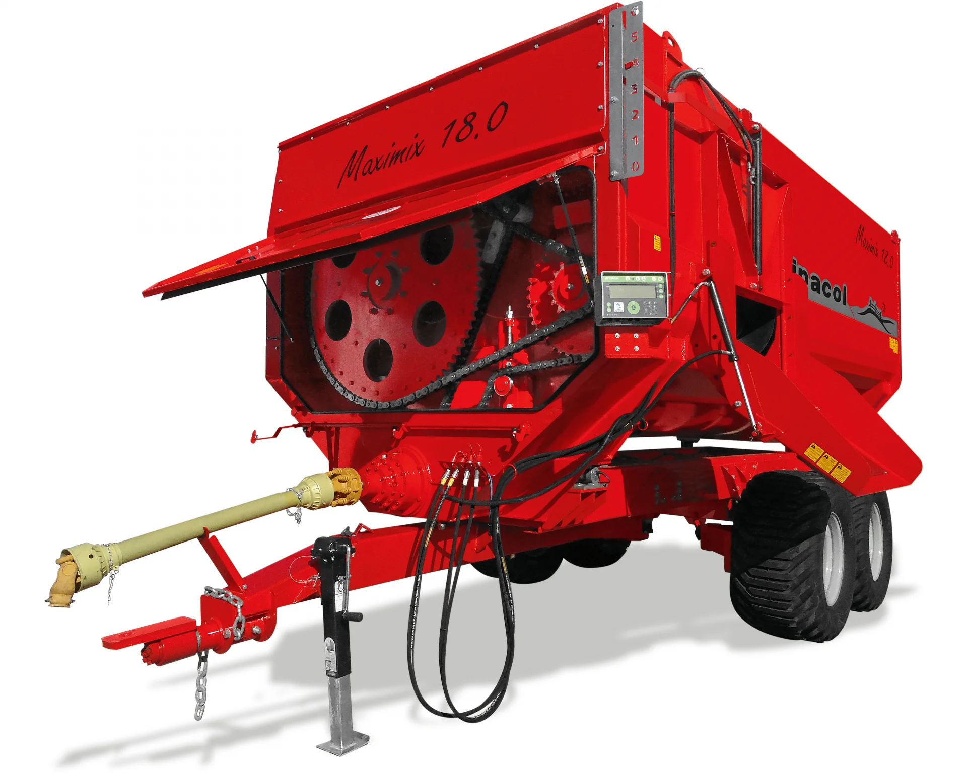 Misturador de ração, feno e forragens com fibra curta ou média em forma de silagem.
